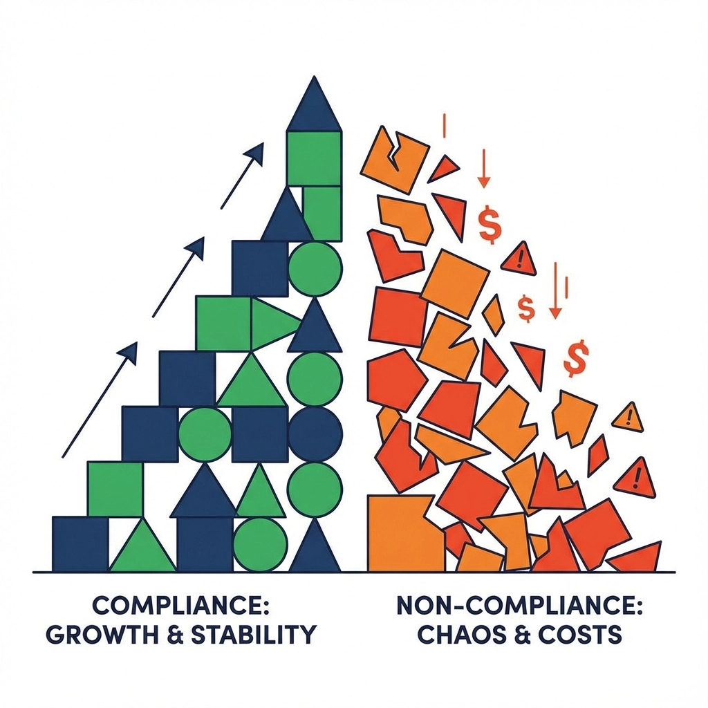 Small businesses need compliance systems that grow with their operations. Starting with solid foundations prevents costly corrections later while supporting business expansion.